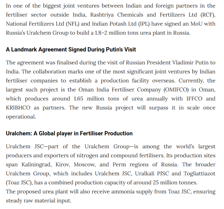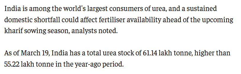 India consumes approximately 35–36 million tonnes of urea annually and produces around 28–29 million tonnes domestically. The gap is normally covered by Gulf imports.