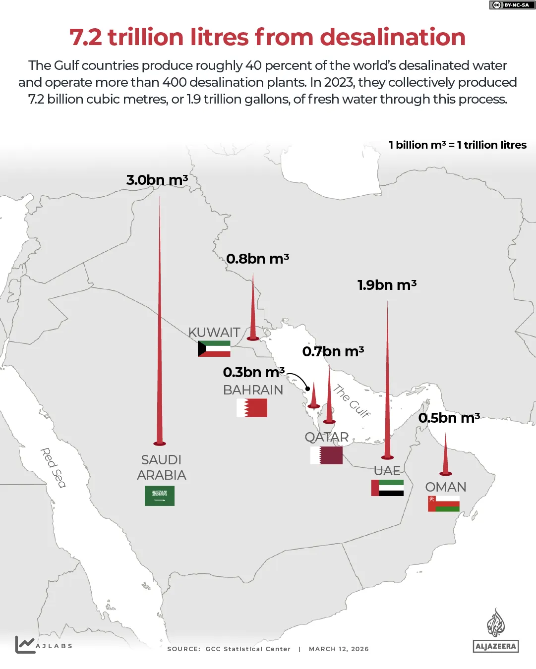 Notably, the installed desalination capacity of these states exceeds actual production, estimated at around 26.4 billion cubic metres per year.