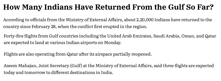 The departure has already begun. As of mid-March, over 220,000 Indian nationals had been repatriated from the GCC and Iran — and critically, this reverse migration includes a disproportionate share of skilled professionals and business owners, not just day laborers. The human capital embedded in complex operations is being hollowed out alongside the manual workforce.