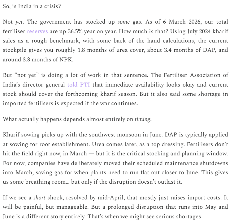 India's situation has a temporal urgency not fully captured in mainstream coverage. The challenge is not merely whether fertilizer is available today — it is whether it reaches farmers in the right form, at the right price, in the right locations, before June, when the southwest monsoon arrives and the kharif planting season begins.