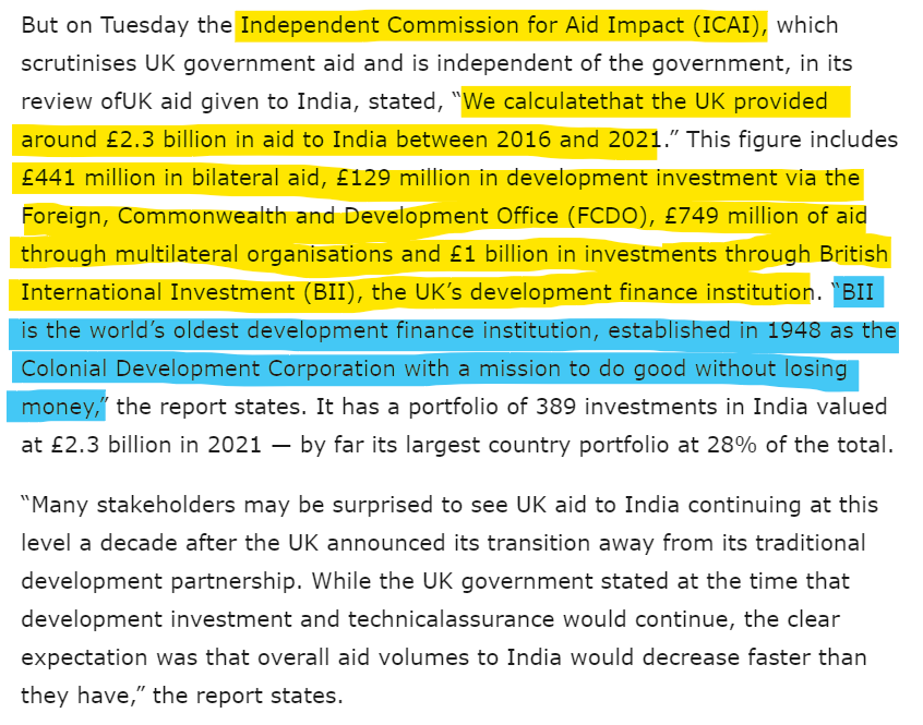 Apparently, this BII had provided 2.3 billion pounds of aid money to India between 2016 and 2021.