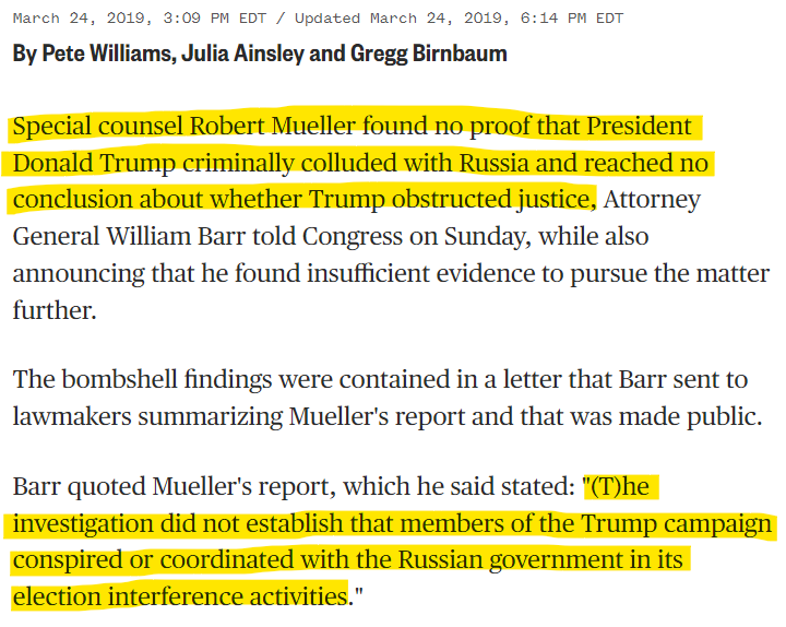 The investigation concluded in 2019 with the verdict that there was no evidence indicating that President Trump or his aides coordinated with the Russian government's efforts to interfere in the 2016 election.