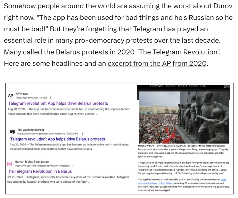 And the strange thing is that Telegram was the backbone of many pro-democracy protests around the world. Shaun Maguire wrote in his X article about it.