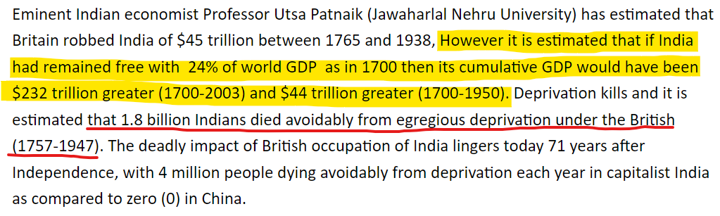 India went through a terrible colonial rule. It is estimated that 1.8 billion Indians died during that authoritarian regime imposition.