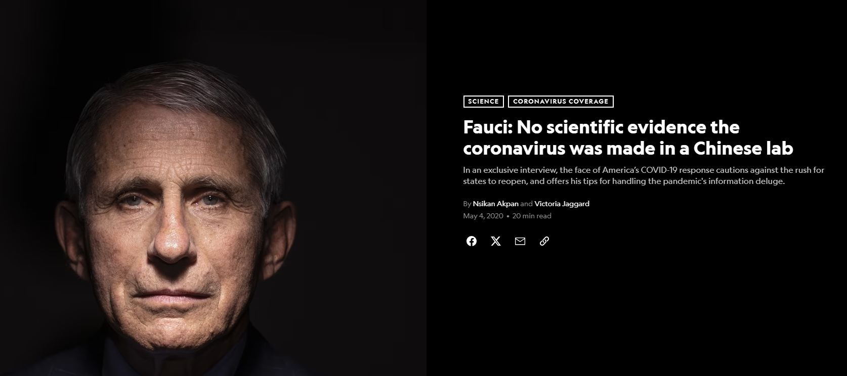 That was the time when authoritarian diktats of the Western regimes were prevalent. Social media platforms were censoring information. The mainstream media, like even the National Geographic, were carrying "reports" with imposing visages of Anthony Fauci declaring the theory that the COVID virus came from a Chinese lab - "lacking scientific evidence."