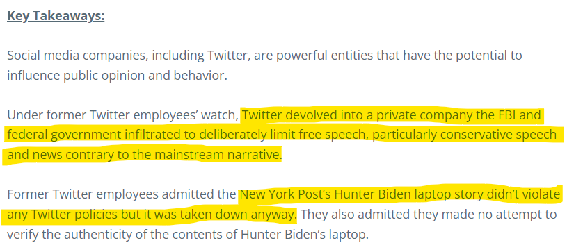 Social media companies were just an extension of the FBI, which itself was carrying out the political agenda of the Democrats.