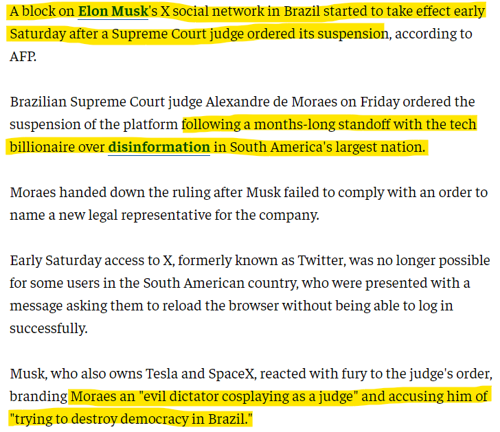 But that was not enough. He has put a fine of $8900 for anyone who uses a VPN to use X. That is how much the new establishment is afraid of X in Brazil.