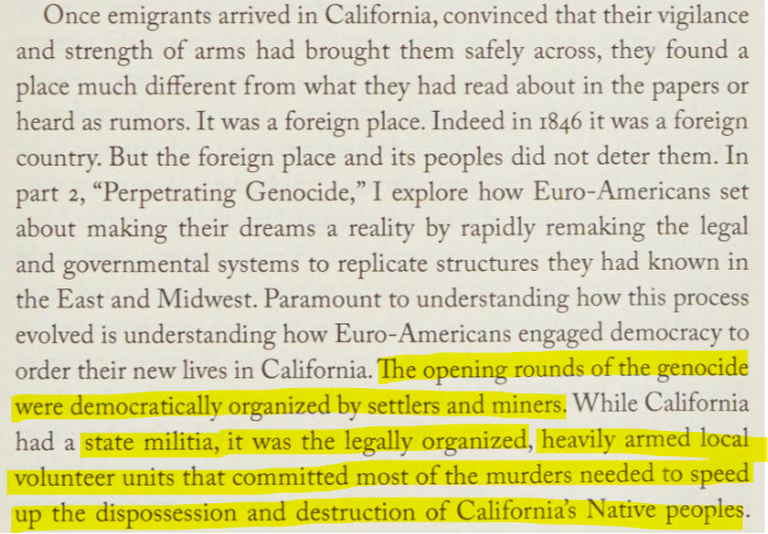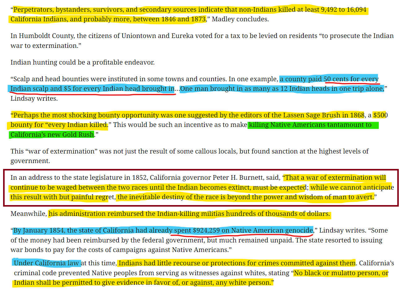 The state of California spent a million dollars in those days to systematically eliminate the Native Americans.