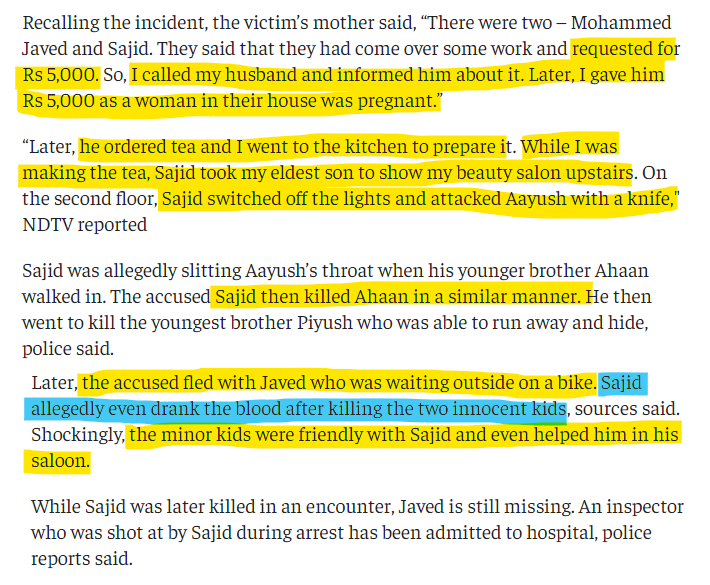 On March 19th 2024, two brothers - Sajid and Javed - entered the house of Vinod Kumar and while Kumar had gone inside to get money for the these two Muslim neighbors, they went on the terrace and slit the throats of Vinod's two sons Ayush and Ahaan and then stabbed them 23 times before trying to escape!