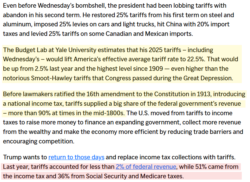 - Current tariffs generate <2% of federal revenue vs 51% from income taxes