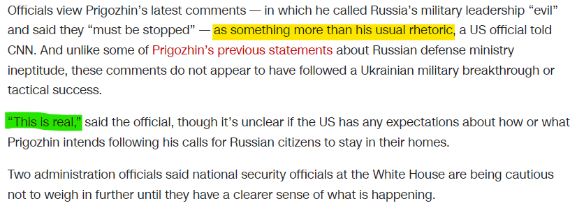 Although the White House said that they were "monitoring the situation", but the officials quoted by the CNN (media house aligned with the current Democratic establishment in power in the US) called Prigozhin's actions as "real". They were "more than just rhetoric".