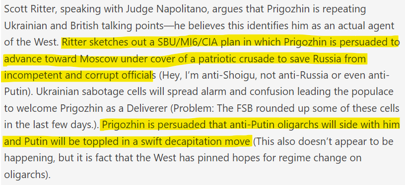 - No criminal charges on Prigozhin: Which frankly does not matter because FSB can have him assassinated
