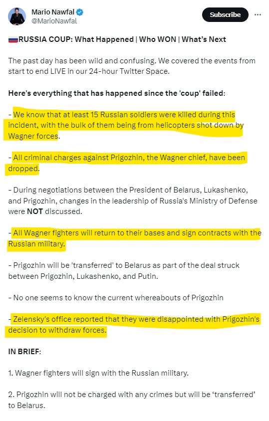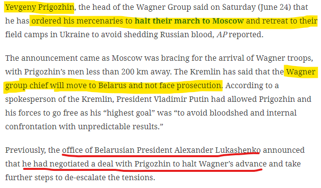 Failure of Prigozhin to "go all the way" has not just brought out the extent, depth and intent of those who wanted Putin out - internally and externally - but his ability to anticipate things even when this crisis was escalating while taking quick action does not augur well for his detractors (internal and external).
