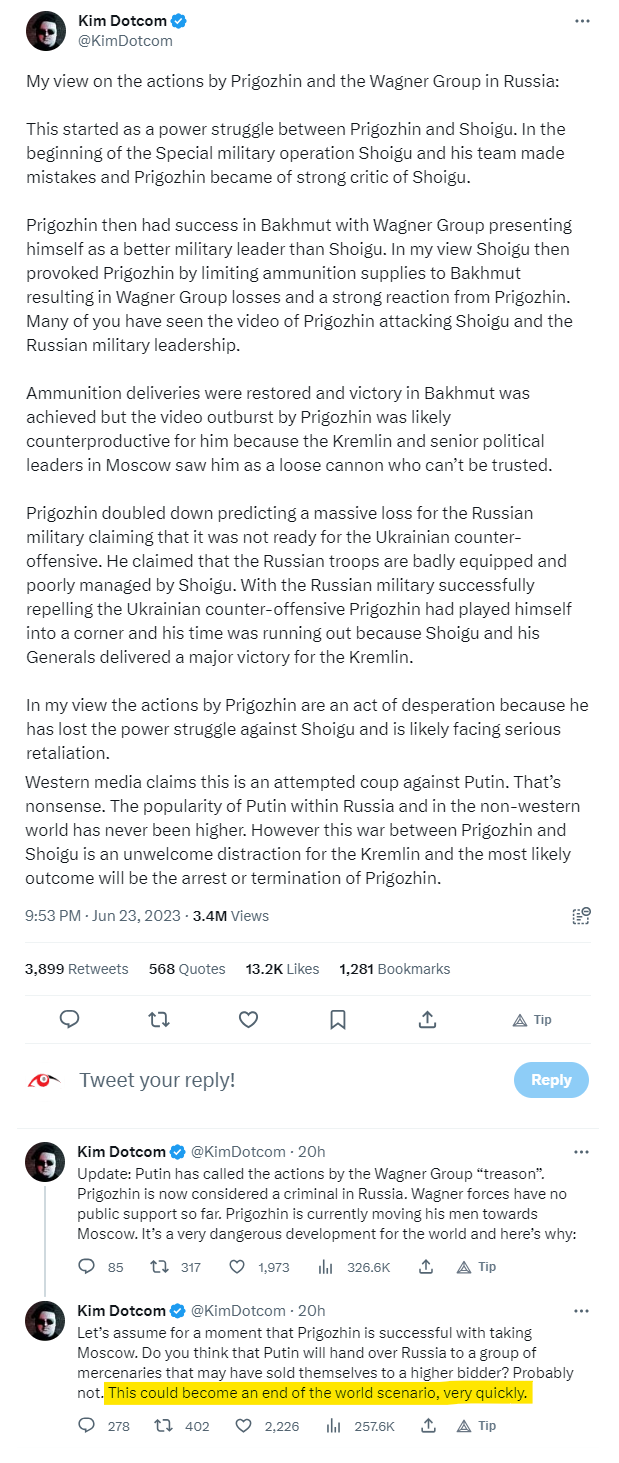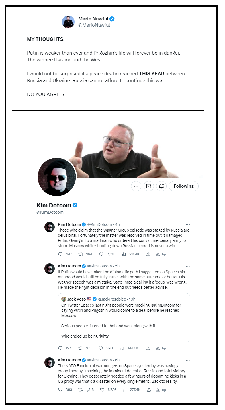 Quite obviously, KimDotCom was not on the same page as Mario Nawfal. The "Mario camp" felt that Putin is weaker and this will force him into a deal on Ukraine. The "KimDotCom camp" thinks otherwise.