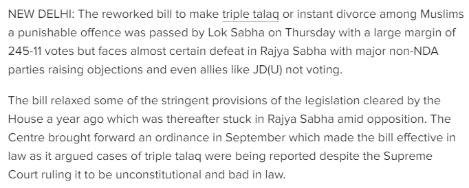 When people ask why BJP cannot pass the bills despite such a big majority in Lok Sabha, this bill showcases the challenge.  Majority in Rajya Sabha is a must as well.  Unless BJP gets majority in Lok Sabha and Rajya Sabha, most of the real changes that are needed will not happen!