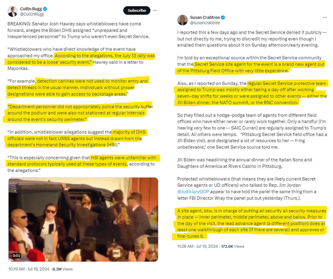 🚨🚨 Whistleblowers tell me that MOST of Trump’s security detail working the event last Saturday were not even Secret Service. DHS assigned unprepared and inexperienced personnel 👇 pic.twitter.com/eo4jNmJWFT