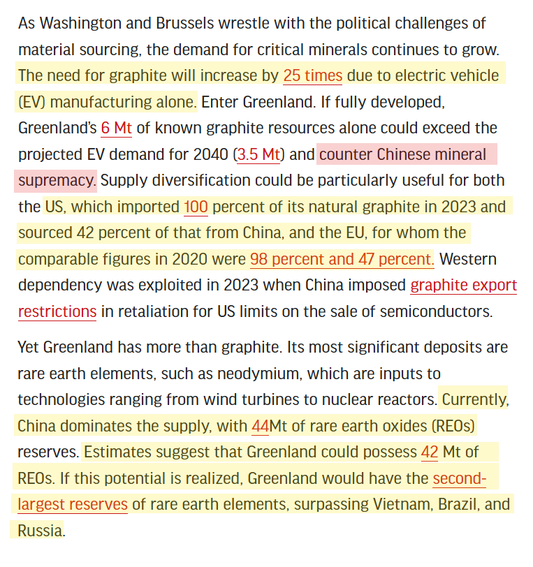 Trying to break away from China's stranglehold in the Rare Earth Minerals market is the key right now. And that is where Greenland becomes very important.