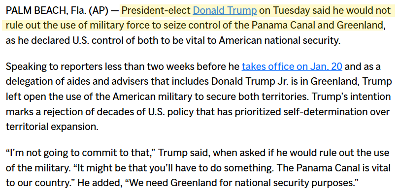 Trump has gone to the extent of threatening the use of military force against Greenland and even Panama.