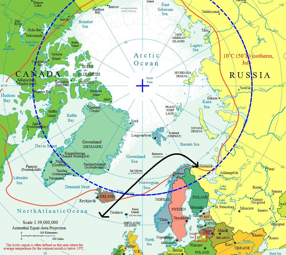 In contrast, Russia’s current Arctic dominance, anchored by Kaliningrad near the Baltic Sea, relies heavily on its military installations, icebreaker fleet, and resource extraction infrastructure in the Arctic. Look at the map below. See where Kaliningrad is and where the Russian mainland is.