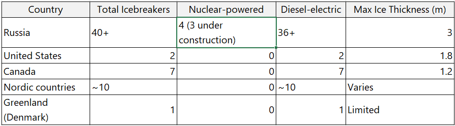 Let us get a reality check on the icebreaker fleet that Russia Vs. all other Arctic powers own.