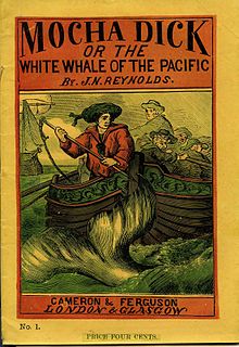1870 UK reprint, Mocha Dick: Or The White Whale of the Pacific by Jeremiah N. Reynolds, Cameron and Ferguson, London, Glasgow. (Courtesy Wikipedia)