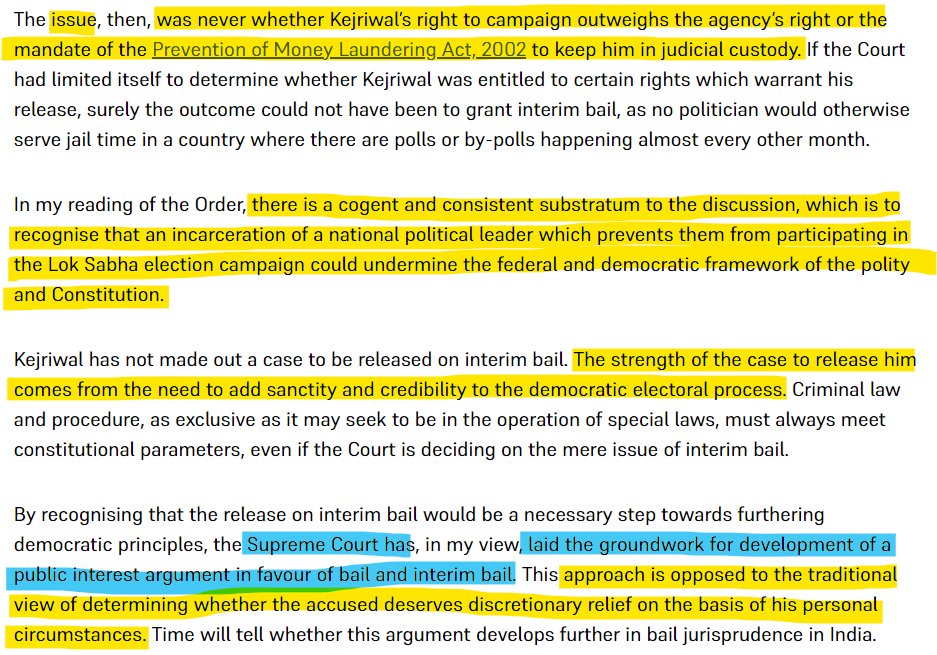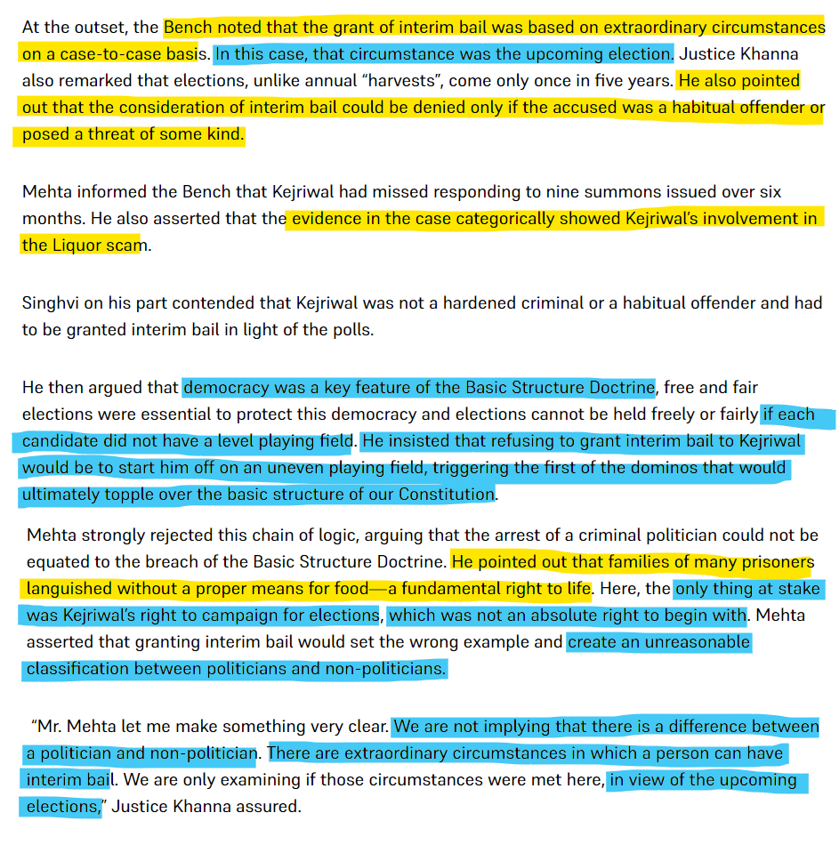 So, Soutik Banerjee argues in this take on the hearing that the Supreme Court's interpretation while releasing Kejriwal on interim bail, despite the gravity of his alleged crimes, was to add sanctity and credibility to the democratic electoral process.