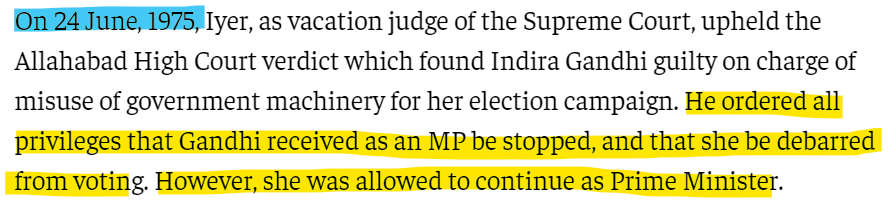 On June 24th June 1975, a Vacation Judge of the Supreme Court, Justice VR Krishna Iyer gave "interim relief" to Indira Gandhi.