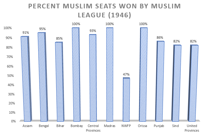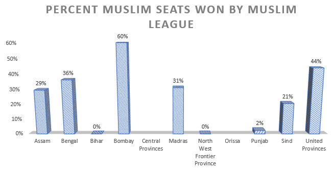 2. The Muslim League was the biggest loser. Even the Muslims did not prefer them. This can be seen from the percentage of their seats won vs. Muslim seats in the different provinces.