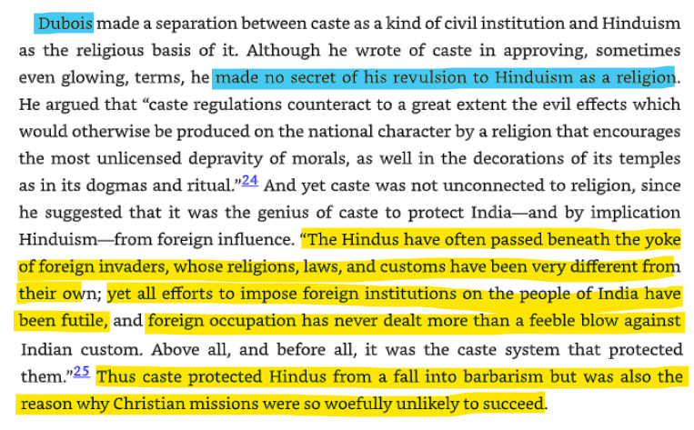 Jean-Antoine Dubois, also known as Abbé Dubois, was a French Catholic missionary who lived in India for 30 years in the late 18th and early 19th centuries. He was ordained in 1792 and sent to India as a missionary. His goal was to convert Hindus to Roman Catholicism. His writings laid the foundation for unleashing hatred upon the Hindus as a legitimate pursuit.