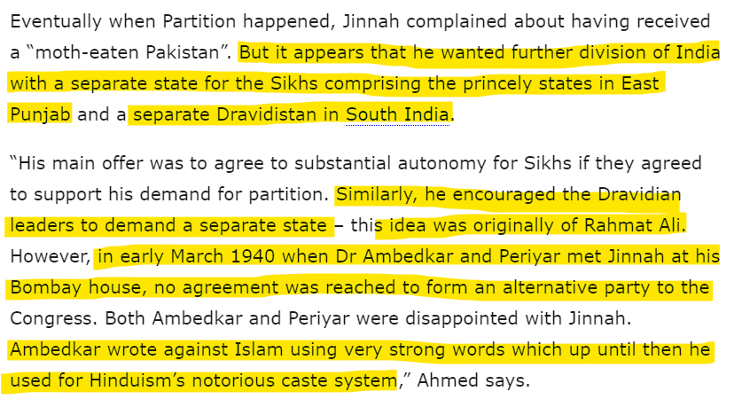 Not many know but Jinnah had reached out to EVR for an alliance. They wanted three nations - Hindustan, Pakistan and Dravidastan for Hindus, Muslims and Dravidians respectively. Of course, Jinnah also dreamt of breaking a Sikh nation from India.
