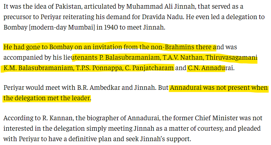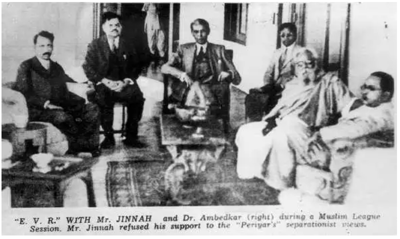 In fact, in a public meeting in Dharavi slum on January 7th, 1940, EVR even bragged about how with the help of Ambedkar and Jinnah, he would be able get the freedom for Tamil Nadu!