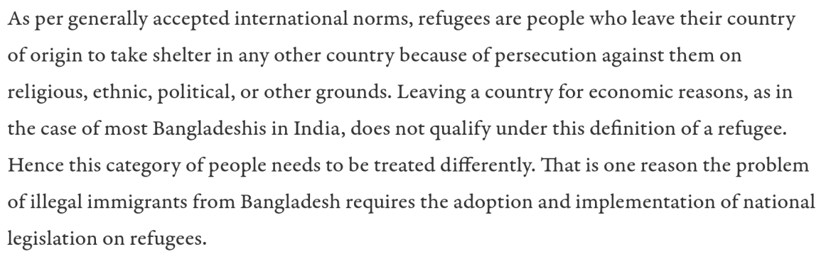 So, whereas the Muslim illegals from Bangladesh can be returned because they are economic migrants (not persecuted), the deporting of Hindus from Bangladesh (persecuted by society and state) back to Bangladesh will be tantamount to Refoulement. And it is against the basic international laws.