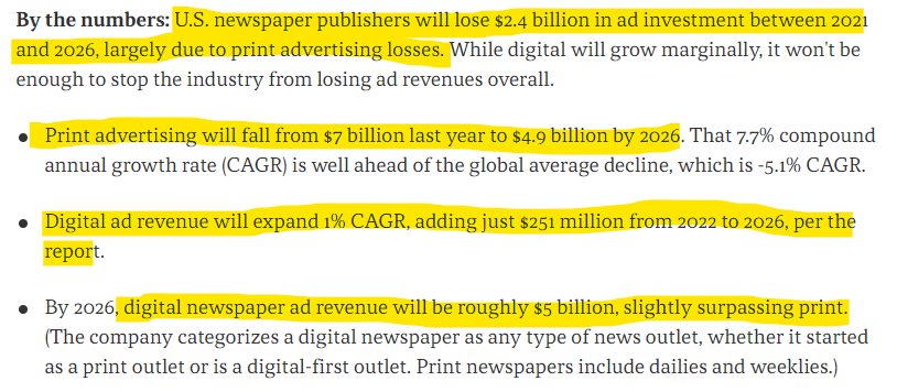 Everything is not great in journalism as we saw at the start of this article. The market is tanking.