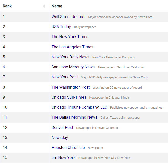 In the US, which is the largest news market, the top ranking newspapers are the iconic names that we have all heard of.
