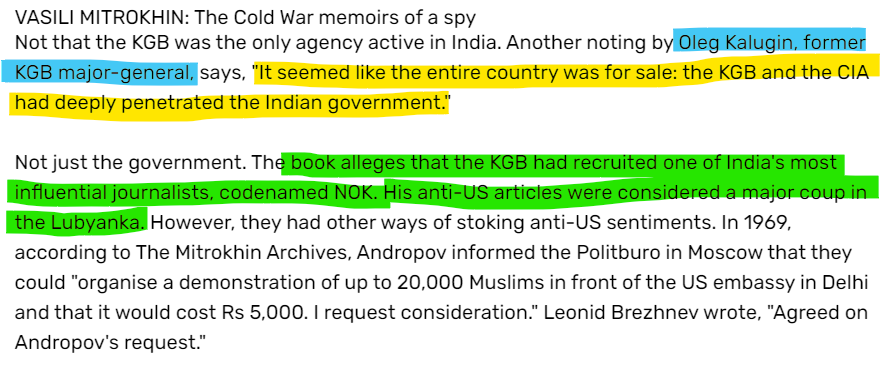 It makes sense when you see how an Indian Cabinet minister demanded $50,000 for giving the KGB all the information it needed. Yuri Andropov rejected the offer because he had enough people on his payroll!
