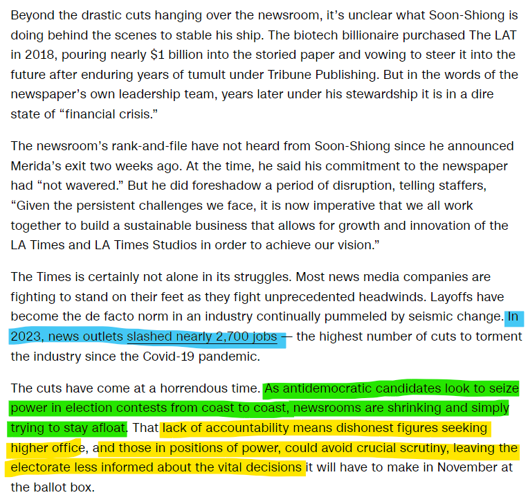 And it's not just the LA Times that is going through such bloodletting. It is everywhere!